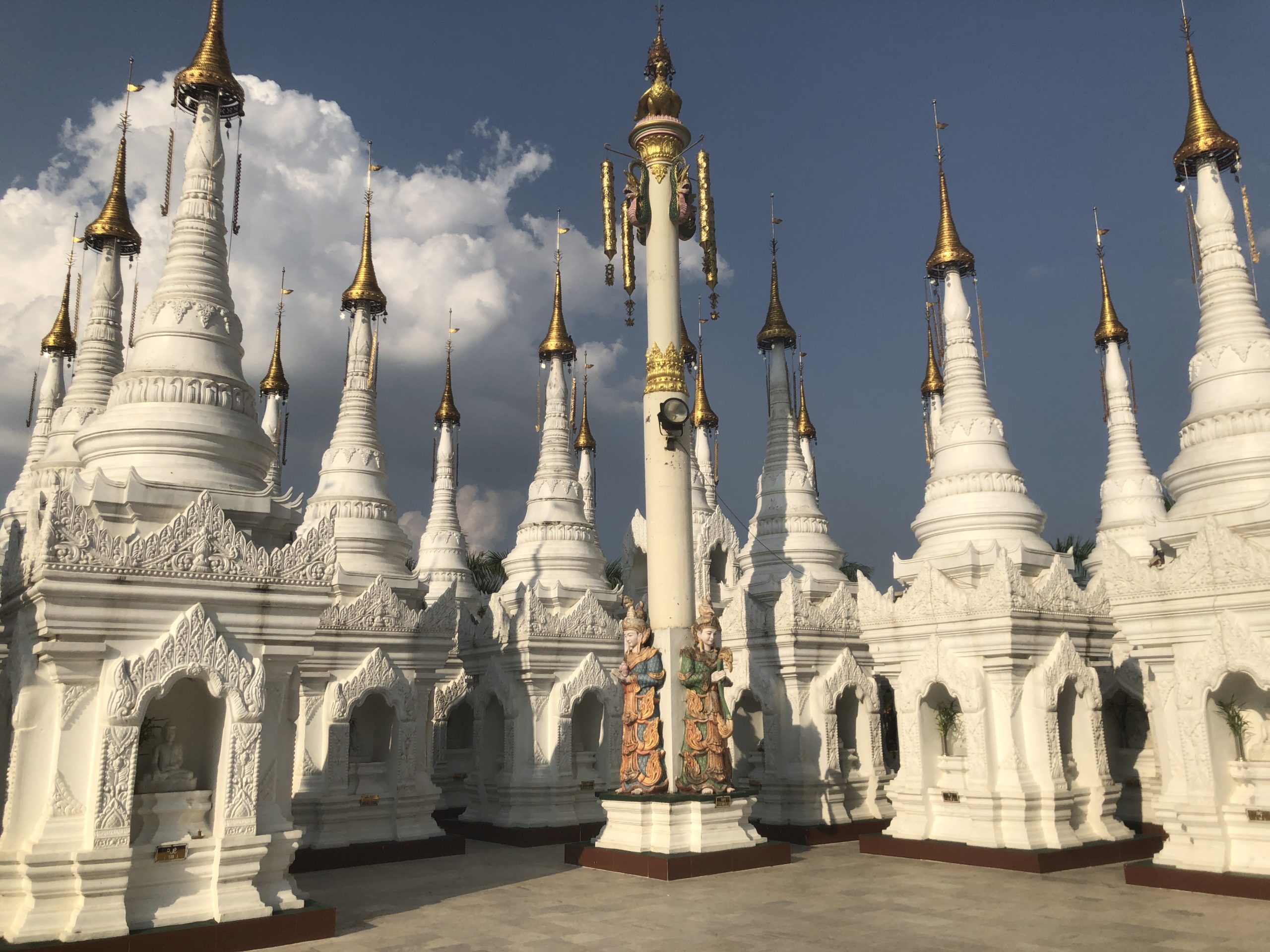 午後は、同行している大門君を連れて、ヤンゴンの西にある「バウン・ドー・チョーク・パゴダ(通称スネーク・パゴダ)」へ。 ここは私にとっては2度目の訪問ですが、インドのブッダガヤにあるマハボディー寺院を模した白い仏塔や、林立する小仏塔が非常に美しい場所です。ミャンマーの仏教文化の深さに触れ、静かな時間を過ごしました。